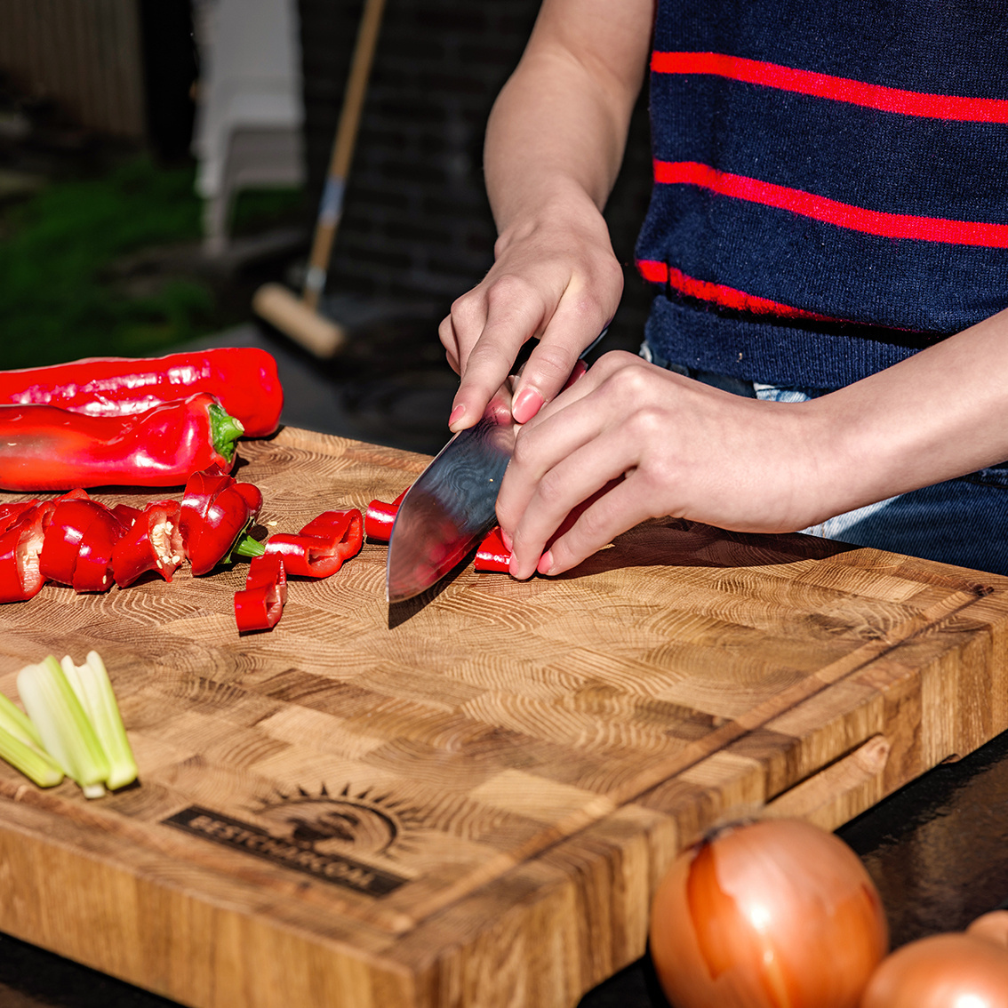 Zacht voor je messen: De unieke kopshouten constructie is teder voor de randen van je messen, waardoor het risico op botheid wordt geminimaliseerd. Hierdoor blijven je messen langer scherp, waardoor het bereiden van maaltijden een fluitje van een cent wordt en blijft!