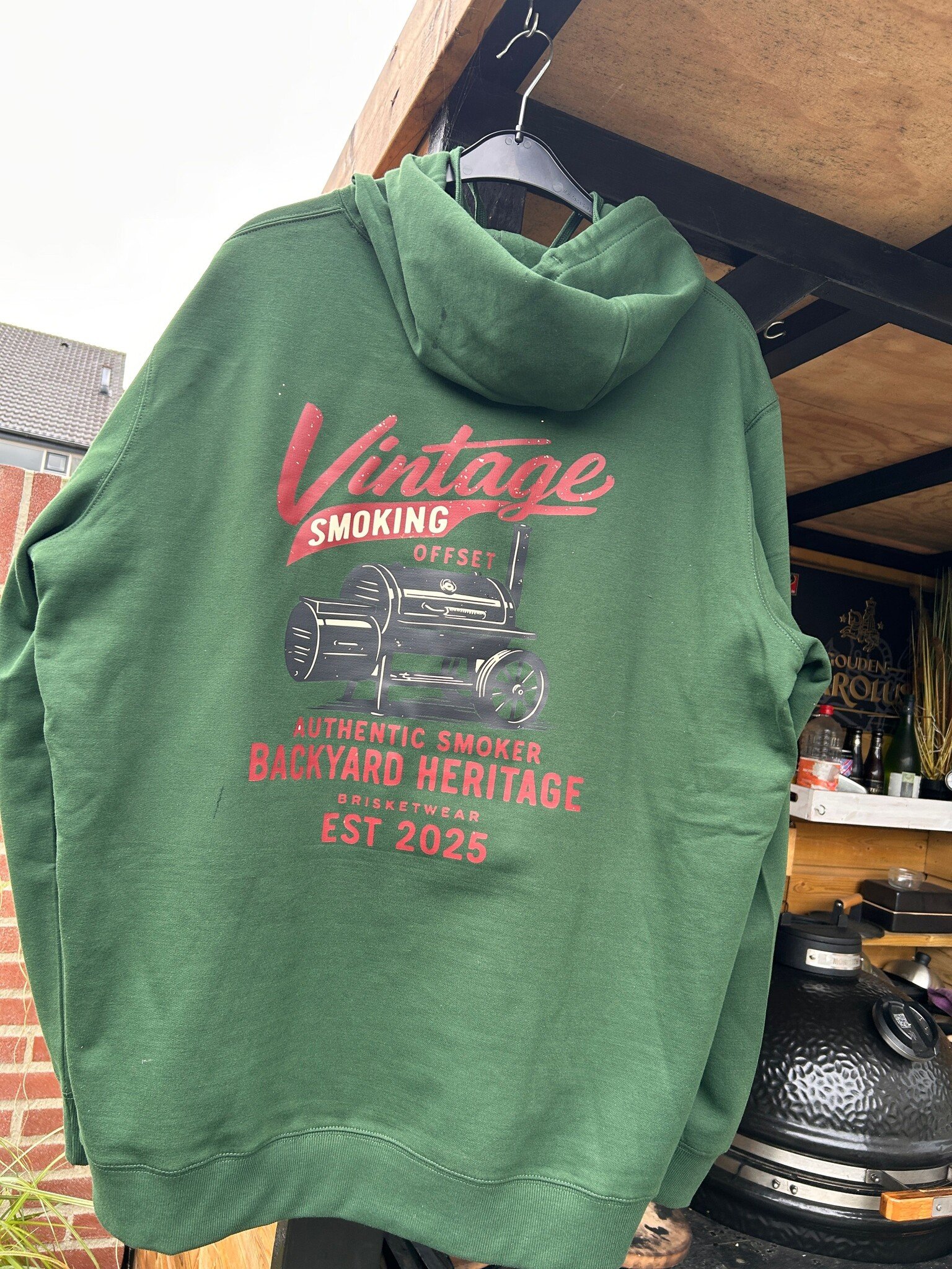 Dit is geen hoodie voor erbij. Dit is er één voor mensen die weten wat rook, vuur en tijd doen met eten.