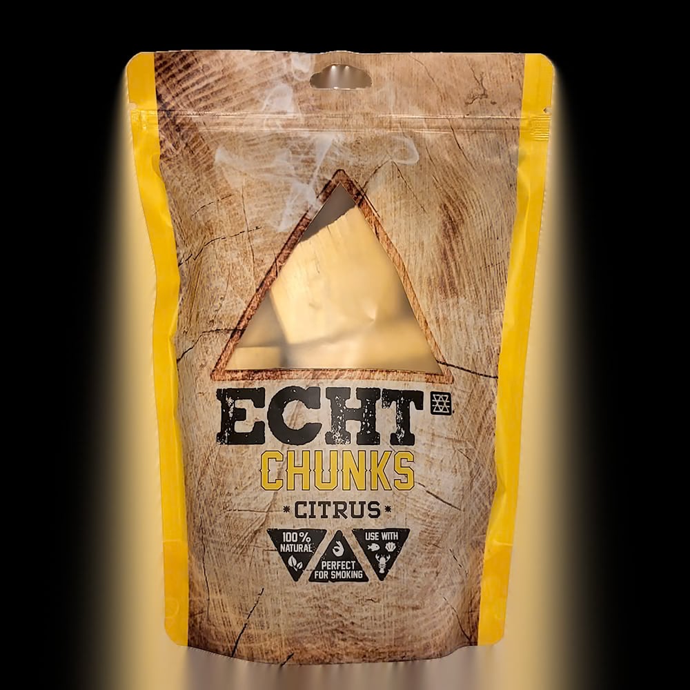 De ECHT Chunks Citrus 500 gram zijn grove stukken rookhout die een frisse en licht zoete rooksmaak toevoegen aan je barbecuegerechten. Citrus hout staat bekend om zijn subtiele, verfrissende aroma met een lichte fruitige en zachte kruidige ondertoon. Hierdoor is het bijzonder geschikt voor het bereiden van vis, gevogelte en lichtere vleessoorten, waarbij de natuurlijke smaken mooi naar voren blijven komen zonder te overheersen.