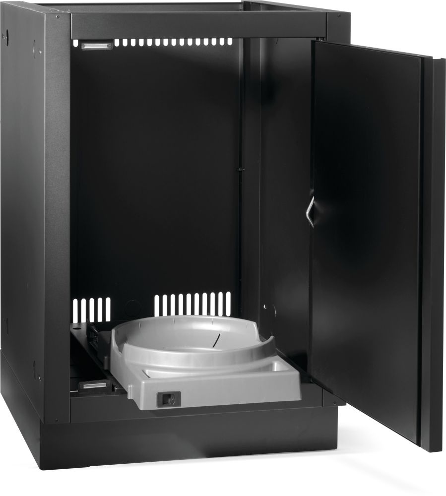 Geef je gasfles een veilige plek met de OASIS® Kast met gasfles opbergmogelijkheid & Geïntegreerd Hittebeschermingspaneel. Deze kast is speciaal ontworpen voor de 500 en 700 Series BI10 inbouw zijbranders en heeft een geïntegreerd hittebeschermingspaneel voor de gasfles eronder. Deze mat zwarte, met Poedercoating afgewerkte Galvanneelstaal kast is extra duurzaam dankzij de dubbele afwerlaag en de stijlvolle mat zwarte deur. De kast wordt volledig gemonteerd geleverd, met makkelijk verstelbare pootjes en uitsparingen voor elektra en gas. Het achterpaneel van deze kast heeft extra ventilatiesleuven. Deze kast is ideaal voor de meeste gasflessen en is ontworpen om de aardgas aansluiting netjes weg te werken voor de inbouw- BBQ en Zijbranders. Maak je OASIS® buitenkeuken helemaal af door deze kast toe te voegen aan je buitenkeukenplan.