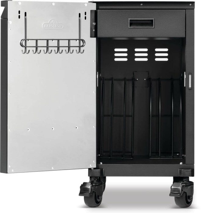 Voeg slimme opbergruimte en stijl toe aan uw barbecue-opstelling met de Phantom Prestige® Under Grill Storage Carts. Deze prachtige, matzwarte, vrijstaande kasten zijn ontworpen om naadloos te integreren met uw barbecue, stevig op hun plaats te blijven staan en moeiteloos te verplaatsen als één geheel dankzij vier soepel rollende, vergrendelbare zwenkwielen. De verborgen bovenste lade biedt snelle toegang tot uw meest gebruikte gereedschap, zodat u alles wat u nodig hebt binnen handbereik hebt. Binnenin bieden een slim ontworpen opbergverdeler en ingebouwde gereedschapshaken een aanpasbare organisatie om uw barbecueplek netjes en efficiënt te houden. Of u nu bezig bent met voorbereiden, koken of opruimen, deze opbergkarren maken het gemakkelijk om georganiseerd te blijven en uw barbecue-ervaring naar een hoger niveau te tillen.
