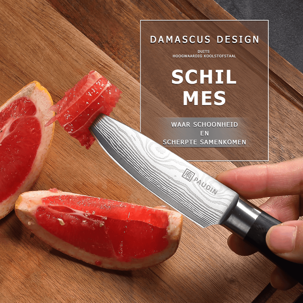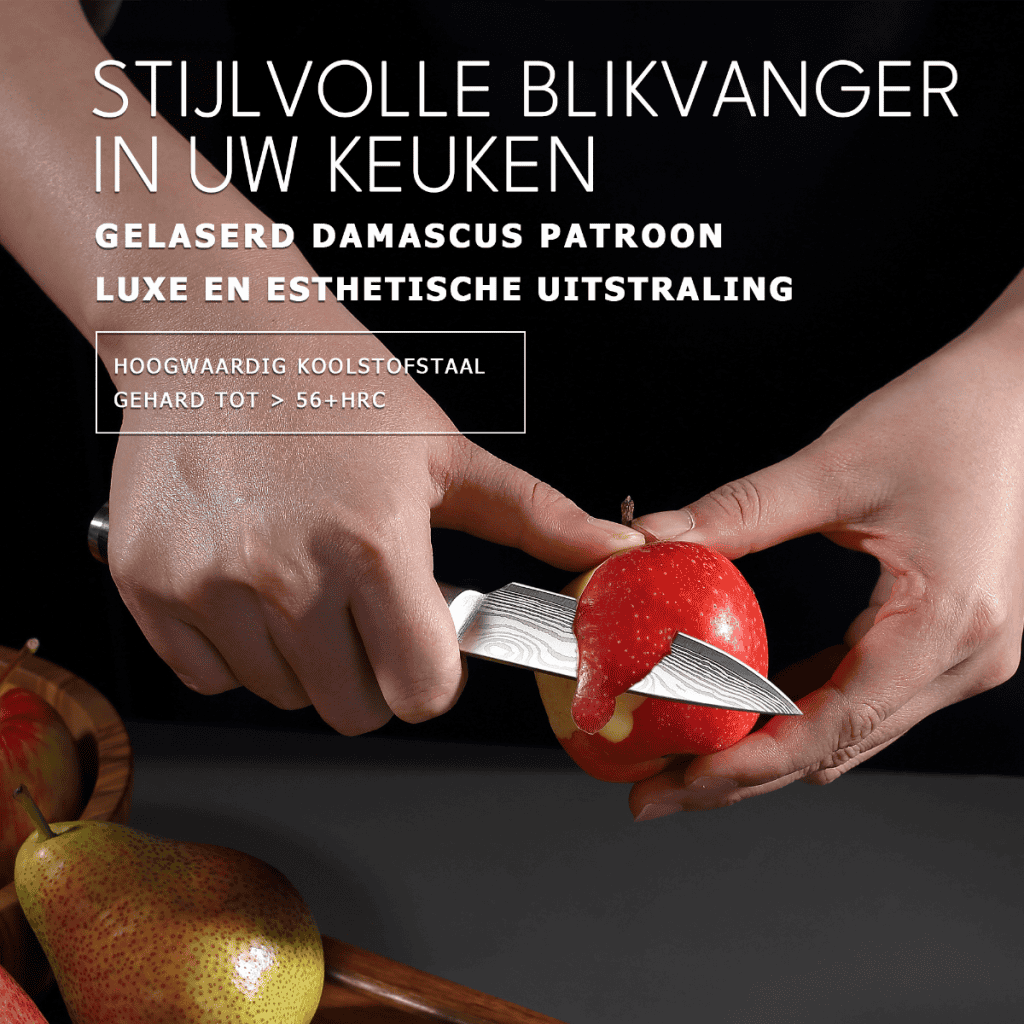 Met een lemmet van 9 cm en een prachtig ingelaserd Damascus patroon, is dit mes ontworpen om te presteren en indruk te maken. Het is niet alleen een essentieel keukengereedschap, maar ook een stijlvolle aanvulling op jouw keuken.