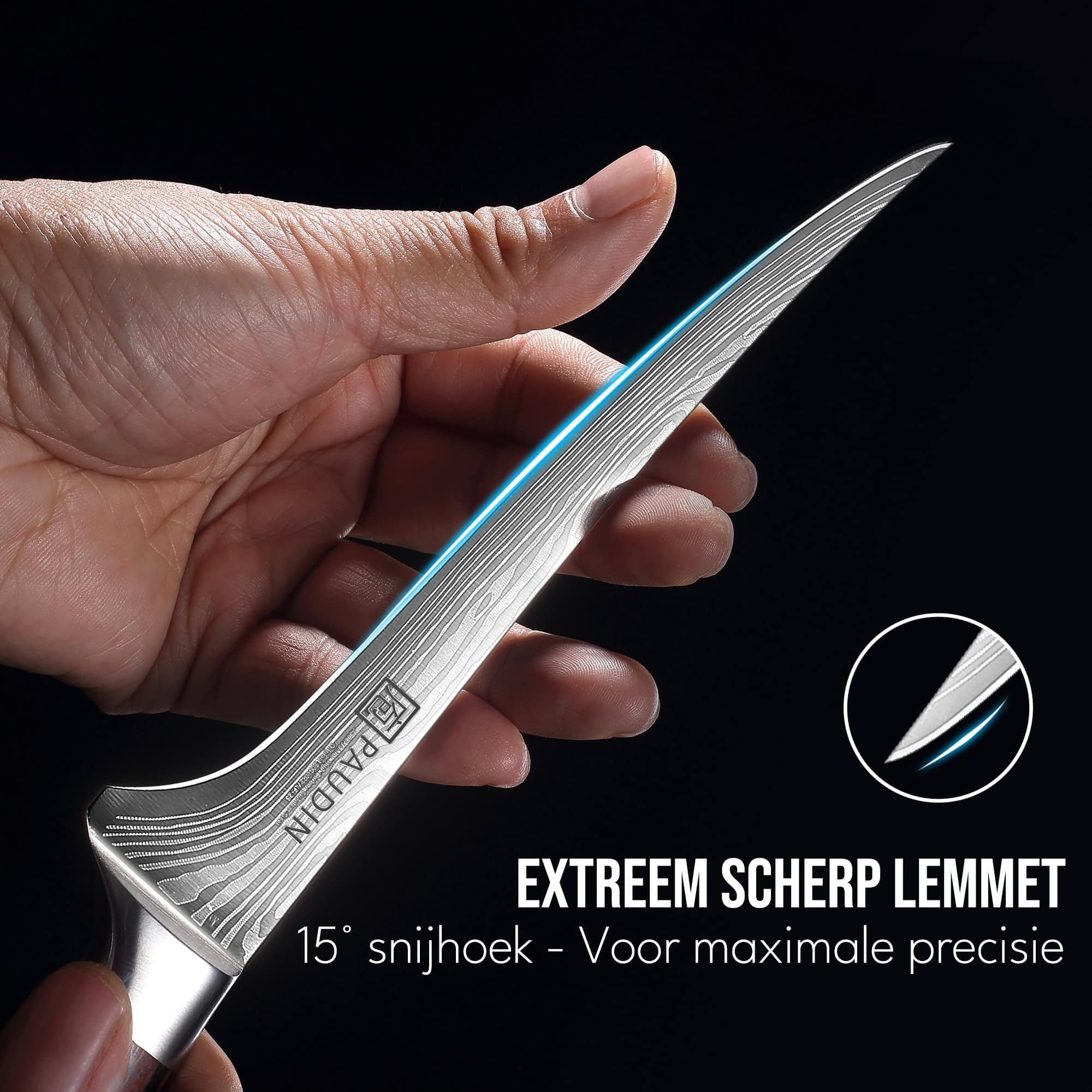 Slijpwijze: Japans geslepen, hoek van 14–16 graden per zijde