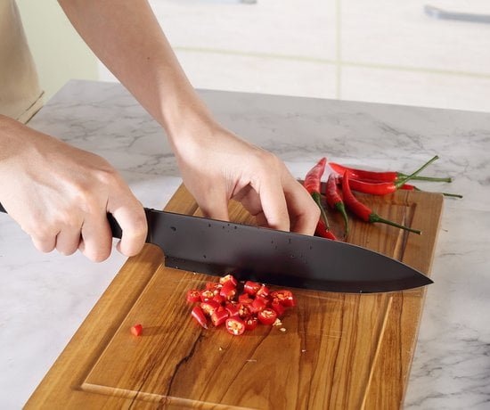 Het lemmet en het holle handvat zijn uit één stuk gemaakt. Ze behouden de perfecte balans tijdens het snijden en maakt u zich vooral geen zorgen meer over de verborgen ziektekiemen aangezien er nergens plaatsen zijn waar deze zich kunnen ophouden en vermenigvuldigen. Het handvat is ergonomisch ontworpen voor een comfortabele grip, veiliger en efficiënt snijden.