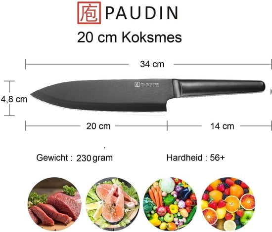 Een goed koksmes koopt u niet voor even, maar moet jaren meegaan en in alle situaties soelaas bieden. Paudin staat voor kwaliteit en duurzaamheid, louter de beste staalsoorten worden gebruikt en de afwerking is altijd van het hoogste niveau. Een PAUDIN mes is vlijmscherp, elegant en heeft een veilige, ergonomische en comfortabele grip. Dit alles zorgt ervoor dat dit koksmes zich binnen zijn segment kan scharen onder de sterkste en beste messen in de markt! Kortom, PAUDIN keukenmessen zijn de messen waar u naar zoekt!