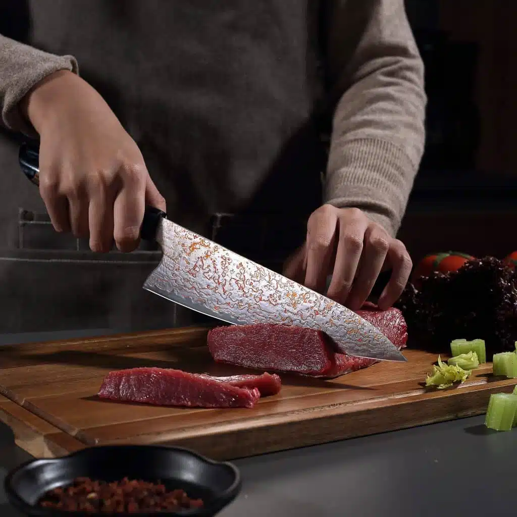 67-laags koper Damascusstaal: een prachtig patroon met uitzonderlijke scherpte en duurzaamheid.