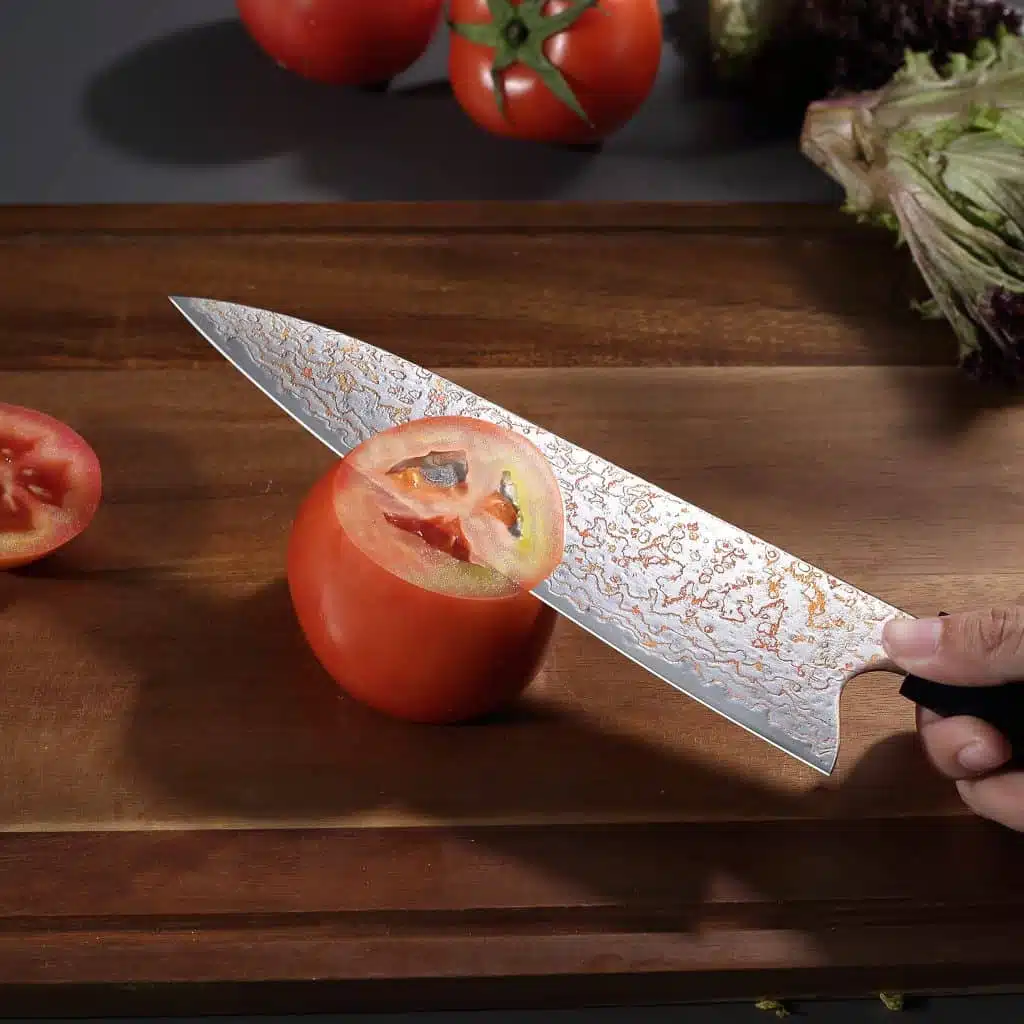 Roestvrij VG10-stalen kern: garandeert langdurige prestaties en uitstekende snijprecisie.