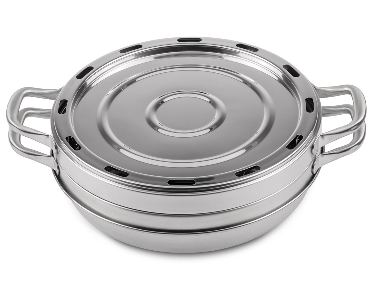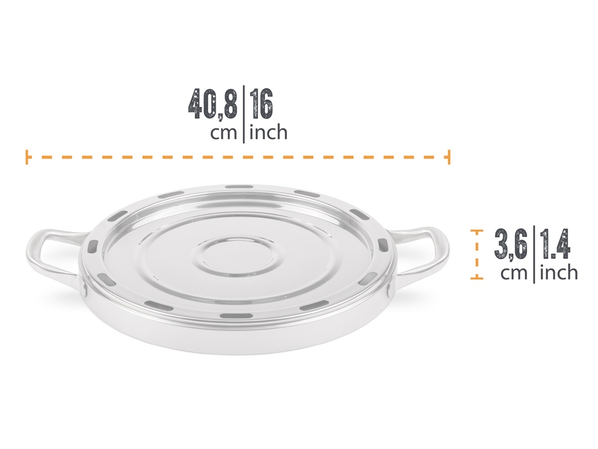 Met de bakplaat kunnen in de Camping Oven op twee niveaus tegelijkertijd twee gerechten worden bereid. Zeer geschikt voor het maken van bijv. pizza!