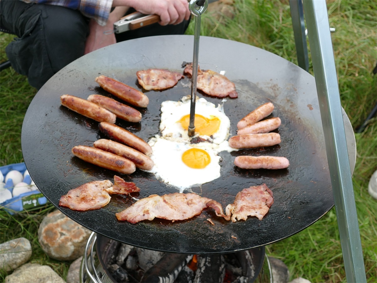 De Petromax Hangende Grillplaat combineert traditioneel koken boven een open vuur met moderne functionaliteit: dankzij het praktische staafoog kun je de schaal snel en eenvoudig bevestigen aan de haak van je driepoot. Het hoogwaardige staal, dat perfect boven je vuur is geplaatst, bereikt snel de optimale temperatuur en maakt bijzonder zacht braden mogelijk waarbij alle smaken en sappen bewaard blijven.