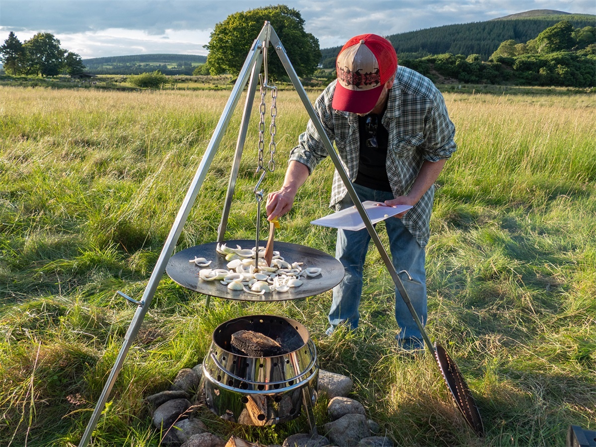 Stel de warmte individueel in door de afstand tot het vuur te regelen via de lengte van de driepootketting. De Petromax grillplaten bieden verschillende temperatuurzones - ideaal voor het braden van filets in het midden en voor het zachtjes garen of warmhouden van gerechten aan de rand.