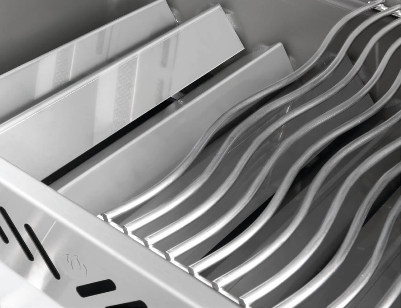 Duurzaam roestvrij staal heeft chroomaccenten voor luxe en duurzaamheid. Grill na het donker met LED Spectrum NIGHT LIGHT™ Bedieningknoppen, met bijna onbeperkte kleurmogelijkheden. Bovendien verandert de SafetyGlow functie de lichten in het rood wanneer een brander in gebruik is. Weet welke branders aan zijn, zodat je de perfecte schroeimarka's of de ideale indirecte grilltemperatuur kunt krijgen. De ovenachtige prestaties van deze grill stellen je in staat om te bakken en braden met gemak, met hoge temperaturen te schroeien, en de achterbranders maken heerlijke rotisserie maaltijden in een mum van tijd. Je weet dat het een Napoleon is met de iconische WAVE™ kookroosters voor die kenmerkende schroeimarkeringen. De geïntegreerde rokerbuis en de speciale brander kunnen deze grill zelfs omtoveren tot een roker, terwijl de interieurverlichting je in staat stelt om goed te grillen, lang na het donker. Perfect en professioneel, de PRO™ 665 Ingebouwd.