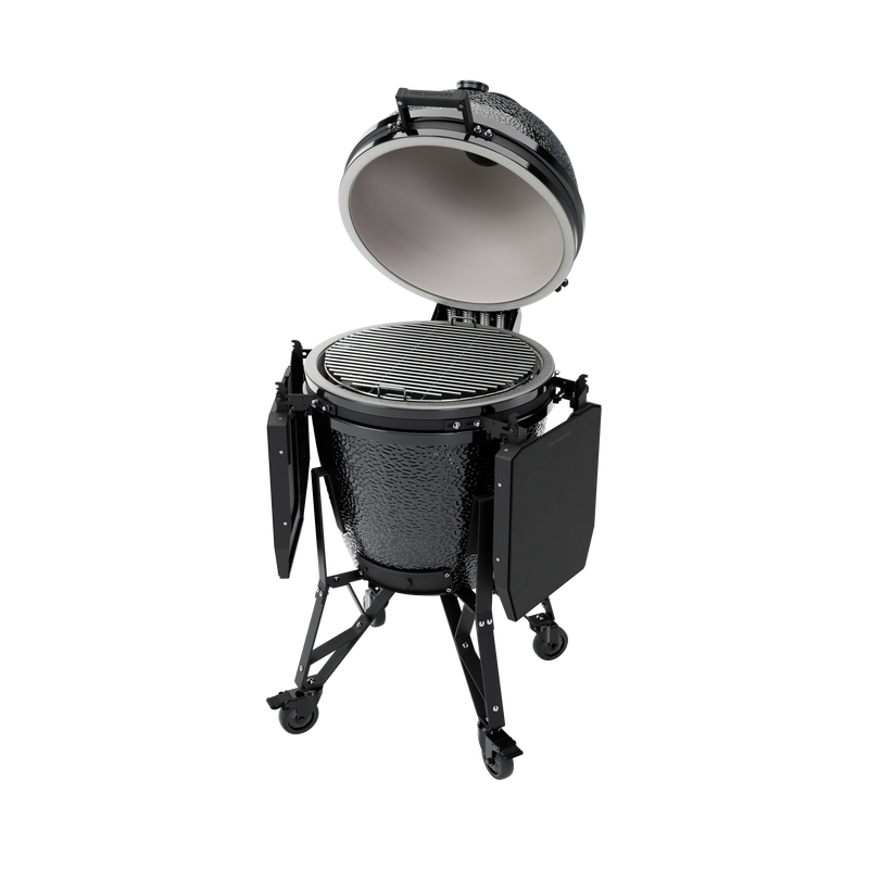 De Bastard Core is de nieuwste uitbreiding binnen de kamado line-up van The Bastard en is ideaal voor de serieuze BBQ-liefhebber die op zoek is naar ruimte én veelzijdigheid. Met een royale grilloppervlakte van 49 cm doorsnee bereid je zonder moeite grotere stukken vlees, zoals 4 strengen spareribs of een flinke procureur voor pulled pork. Natuurlijk kun je er ook perfect bijgerechten op maken, zoals aardappelgratin of gegrilde groenten.
