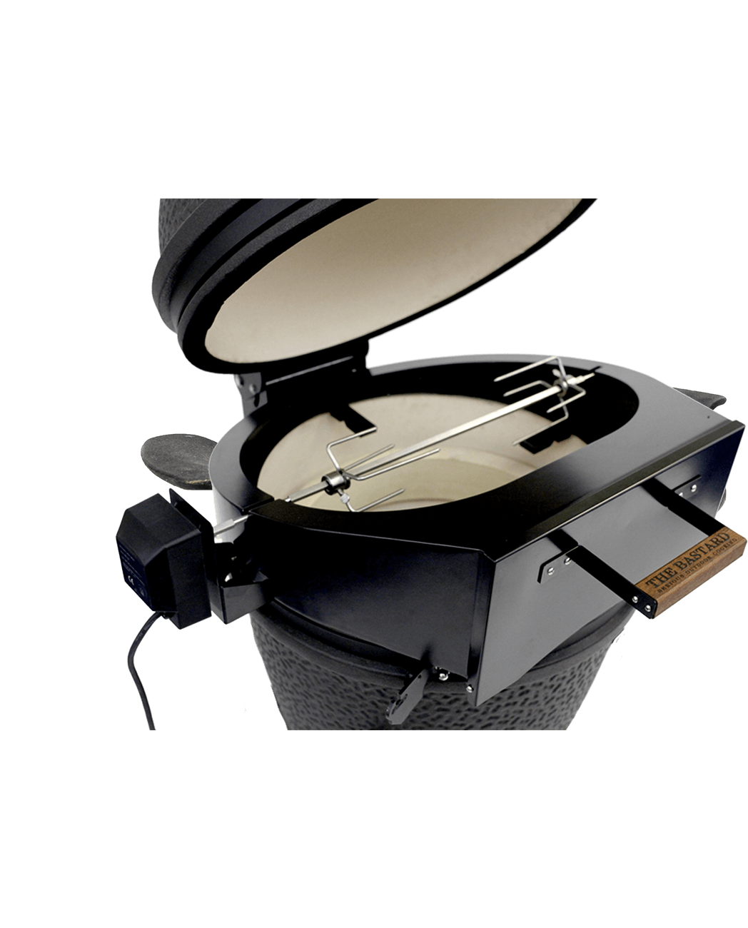 Te gebruiken als rotisserie én als pizza oven. Door de handige deur aan de voorkant blijft de dome gesloten waardoor je het vuur op kan stoken en de warmte goed vasthoudt. De rotisserie oven wordt geleverd met een dikke pizzasteen op maat. Daarmee is het de ideale pizza accessoire voor jouw Bastard. Het demontabele draaispit heeft een sterke motor en grote klauwen.