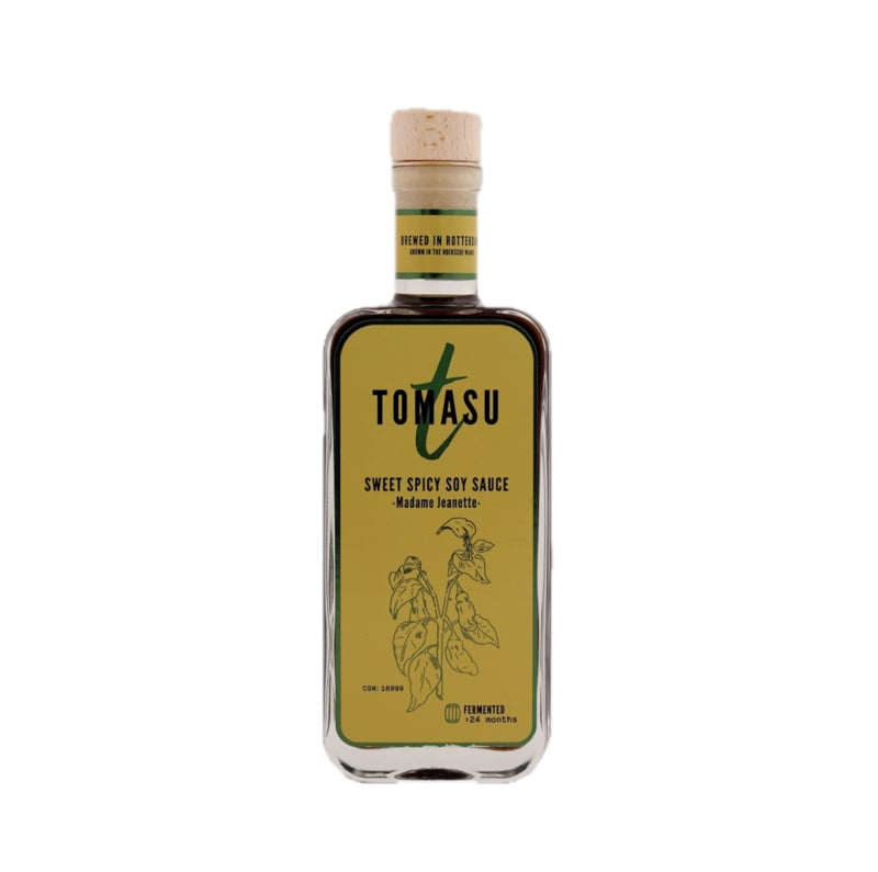 De Tomasu Madame Jeanette Soy (Limited Edition, 200 ml) is een bijzondere en uitgesproken sojasaus waarin traditionele fermentatie wordt gecombineerd met een pittige en aromatische twist van Madame Jeanette peper. Deze limited edition variant biedt een unieke balans tussen umami, zout, licht zoet en een frisse, fruitige scherpte die kenmerkend is voor deze peper.